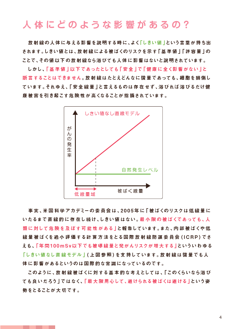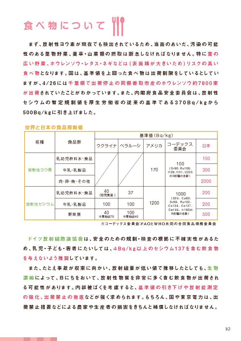 東京のNPO、「セイピース」が、専門家の監修のもとにすばらしいリーフレットを出しました。ぜひ読んで、日々の生活に役立ててください。アクセスが集中してつながりにくい時もあるようなので、セイピースに許可をいただいてここに転載しております。元のサイト、「セイピース」にもぜひ行ってください。また、松井英介さんと嘉指信雄さんが翻訳して広く読まれたドイツ放射線防護協会による「日本における放射線リスク最小化のための提言」も併せてご覧ください。