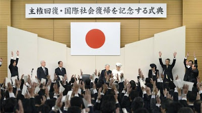 主権回復式典約390人が出席したという。都道府県は全部知事や代理を出しているのでそれを引くと約340人。国会議員は700人以上いることを鑑みると国会議員の半数以上はボイコットしているということである。要するに、これは国を真っ二つに切り裂いた政治的イベントであったということだ。